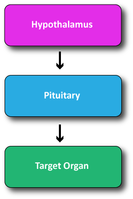Primary, secondary, and tertiary disease states are related to the endocrine axis, and it works from bottom up. So primary issues are related to the target tissue; secondary are related to the pituitary, and tertiary (which are less common) are related to the hypothalamus.